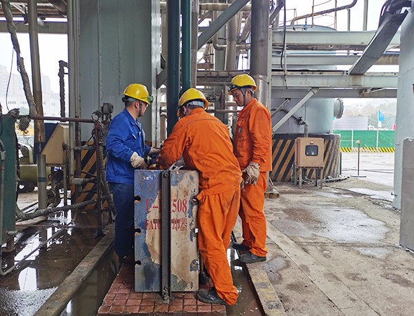 你看,衛(wèi)生小組人員對檢修現(xiàn)場遺留的垃圾進(jìn)行及時(shí)清理、框架十樓師傅們相互配合拆卸DA102填料……