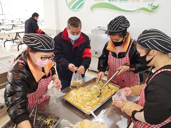 其實行政黨小組的“黨員服務隊”這個黨日活動內容不僅是這一個,在12點前為倒班職工打飯的高峰期,幫著打飯的、幫著點數的、幫著提飯盒裝車的……哪里需要,哪里就有黨小組成員的身影。